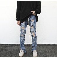 OEM FOGプライベートブルーブランドドロップシッピング男性ジーンズズボンデニムペイントデニムジーンズ